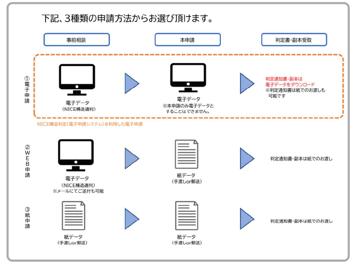 「(構造計算適合性判定)事前相談/申請受付票」にご記入の上、お問い合わせ先までご連絡下さい。